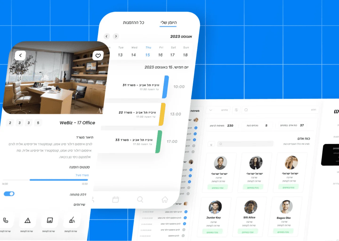 אפליקציה ומערכת לניהול והשכרת משרדים, פתרון חכם עם גמישות מלאה לניהול חללי עבודה, מאפשרת הזמנה והתאמה דינמית לפי דרישות הלקוחות, מתאימה לעסקים המחפשים סביבת עבודה מודרנית וגמישה.